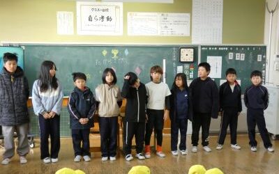 今日の5限目にKさんに、しょんがい音頭の踊りの指導をしてもらいました。3年目をむかえ、全校のみんなは、先生と一緒に踊りました。1年生も初めてのしょんがい音頭を踊りましたが、お兄さん、お姉さんの姿を見ながら、踊ることができました。当日は、地域のみなさんと一緒に踊りたいと思います。