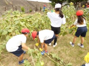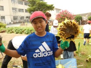 25日(木)3・4年生が夏に満開になったひまわりの片付けと種とりをしました。一面いっぱい咲いたひまわりはとてもきれいでした。今後は、みんなでひまわりの種を取り、閉校式などで、地域のみなさまに、松ヶ崎のひまわりの種を配りたいと思います。来年は、各家庭・松ケ崎地域の畑や庭にたくさんの松ケ崎小学校のひまわりが咲くといいですね。