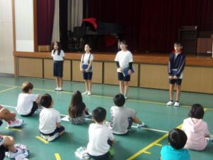 今日から、令和7年度の後期がスタートしました。私の方から、後期に向けて、児童みんなで協力していろいろなことに取り組んでいきましょう。と話をしました。その後、前期の児童会のメンバーから退任のあいさつ。そして、後期からの新しいメンバーのこれからの抱負を話ししてくれました。読書感想文の表彰伝達式も行いました。3年池山あいりさん、4年出口りおなさん、5年池山ゆまさん、6年乾ふうさんがそれぞれ校内入選をいただきました。最後は、後期からのなかよし班のメンバーで顔合わせ、そして、掃除場所の確認をしました。