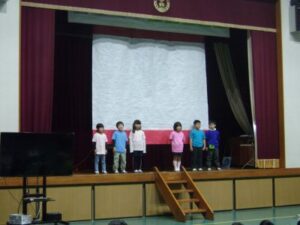 今日の午前の部は、まっさきフェスティバルでした。児童は、作品作りや学年発表の練習を夏休みが終わってから、準備をしてきました。当日を迎えるにつれ、子どもたちから緊張してきたなどの声が上がっていましたが、本番では、堂々と発表することができました。保護者のみなさま、地域のみなさま、いろいろと準備やそれまでの支援ありがとうございました。子どもたちにとっては、思い出残るフェスティバルになったことでしょう。