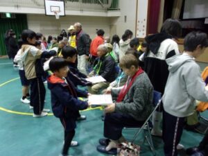 今日は、ふれあい感謝集会がありました。急に寒くなりましたが、たくさんの地域の方々にお越しいただきました。。日ごろ、子どもたち、教職員が地域のみなさまに、いろいろな場面、たくさんの場面、本当に無理なことまで、いろいろなことに協力していただいています。今までの子どもたちが元気に松ケ崎小に通い、勉強や運動ができるのも皆様のおかげです。今日は、児童と教職員で、おもてなしをしました。内容は、今までの振り返りビデオを見たり、グループに分かれての質問タイムなどをして過ごしました。最後には、みんなからのお礼の色紙、学校で収穫できたゆずのプレゼントをしました。本当にいつもありがとうございます。これからもよろしくお願いします。