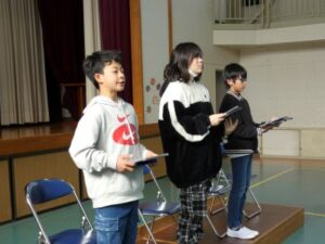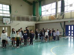 卒業式の練習が本格的に始まりました。松ヶ崎小学校の最後の卒業式は4人の児童が卒業します。呼びかけや、証書の受け取りなど一つひとつ丁寧に取り組んでいます。校歌、歌などもみんなで声を合わせ、4人の卒業生をお祝いしたいと思います。これからも練習は、続きます。