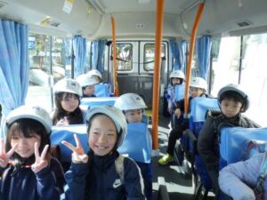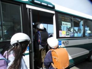 今日の2限目と20分休みに、初めてスクールバスの練習をしました。今回は、バスの乗車の仕方、車内でのマナー、よねのしょう小で降りた時から、児童玄関までの通路等を確認しました。これから、毎日使用するバス通学です。ルールを守って、みんなで協力していきたいと思います。松ケ崎小から米ノ庄小学校まで約10分程度でした。次回は、24日(火)に朝の登校時間にから取り組みます。