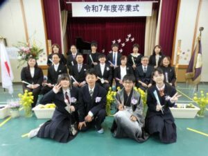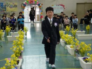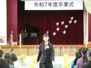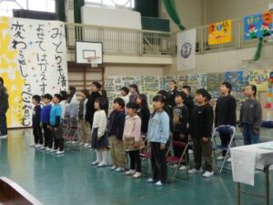松ケ崎小学校最後の卒業式が行われました。最後の卒業生は4人です。この一年、6年生一人ひとりの存在が大きく、4人の笑顔や頑張りが学校全体の力になりました。そして、いろいろな取組の中で、下級生に対する優しさなど、この一年間の学校の最後の物語をあたたかくしてくれました。ありがとう。式では、在校生の力強く心のこもった声かけと歌声が響き渡り、卒業式を大成功に導いてくれました。