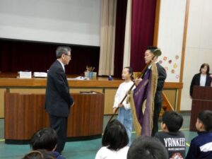 今日は、令和7年度の修了式でした。まずは、校長から、児童23人全員が進級したことを話し、一年間の頑張りを話しました。4月からは、「よねのしょう小学校」の一員として、頑張っていきます。その後、離任式では、今回は、全職員から、一言ずつ、挨拶をしました。松ケ崎小学校での楽しい思い出をたくさん聞きました。いよいよ、明日は、閉校式です。本当に最後です。寂しいけど、みんなで、思い出を創りたいと思います。